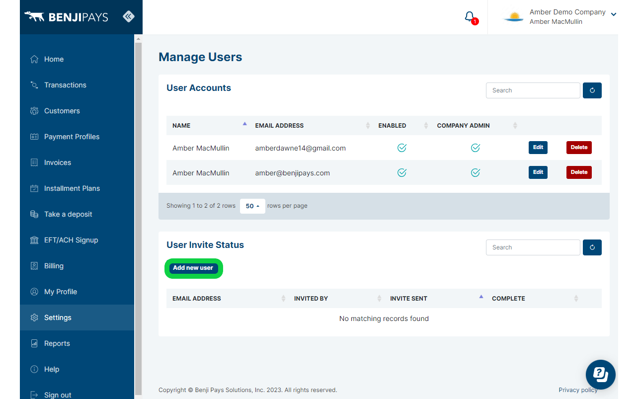Help your team access your Benji Pays account by setting up separate user login accounts for each person. Here's how: