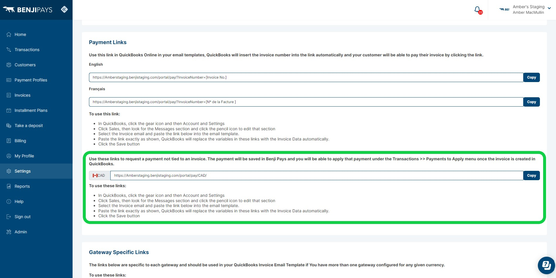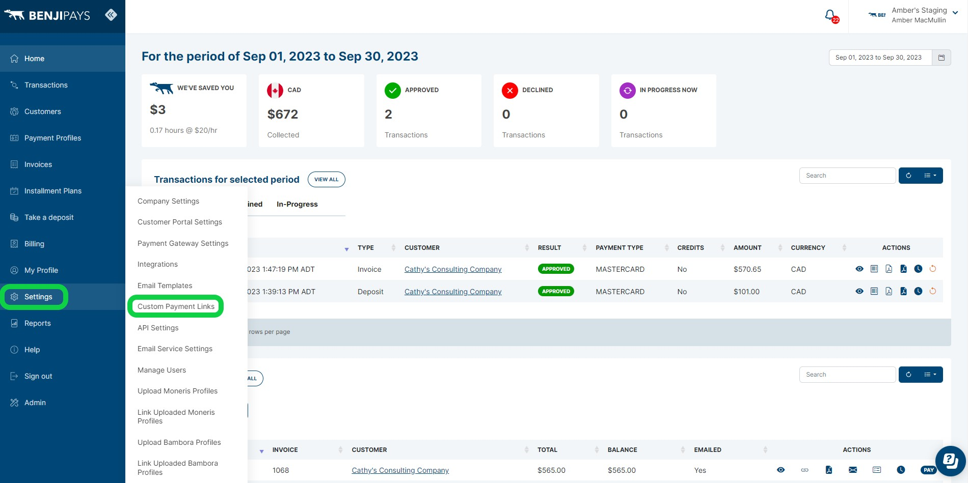 Step 2: Go to Settings and select "Custom Payment Links".