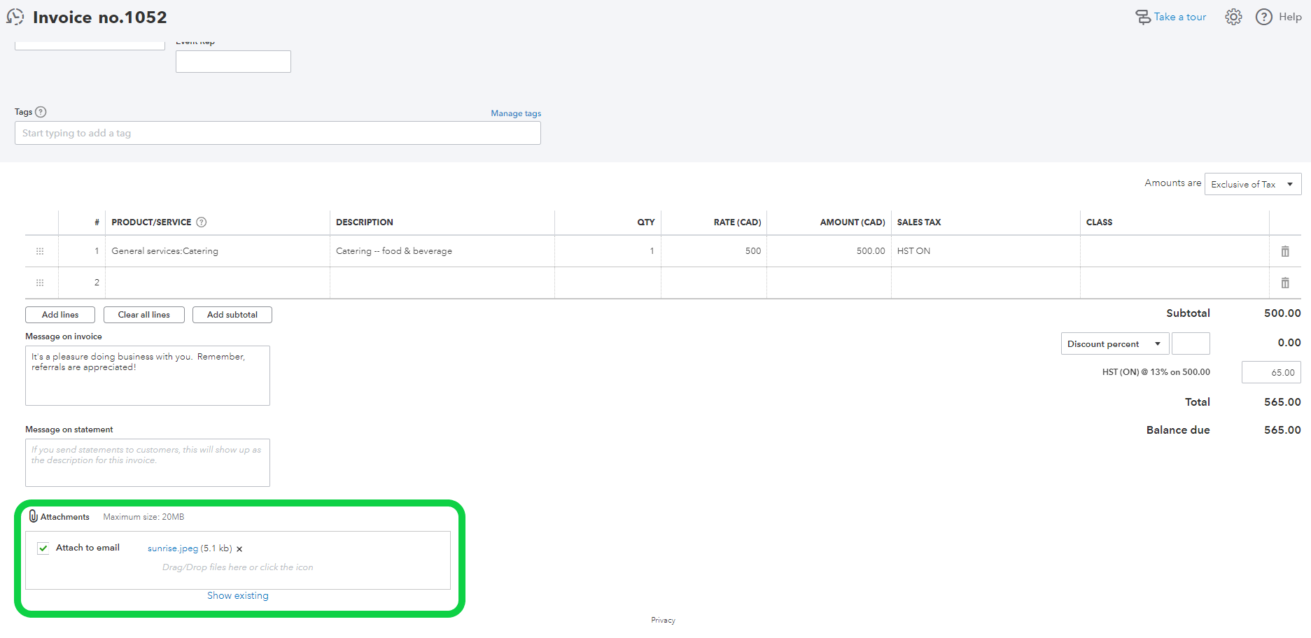 - To display QuickBooks invoice attachment(s) that have "Attach to email" option enabled in QuickBooks in the Customer Portal