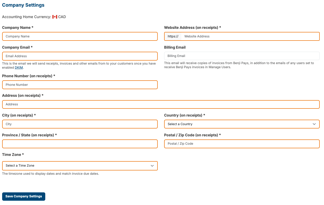 Sign in to Benji Pays > Click Settings > and choose Company Settings