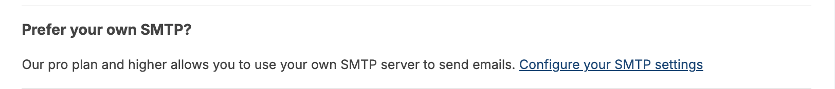 If you prefer to send emails through your own email provider instead of Benji’s default AWS service, enter your SMTP server details by clicking Configure your SMTP settings. Add your SMTP server URL, port, username, and password provided by your email host, enable SMTP, then send a test email to confirm it’s working before saving.