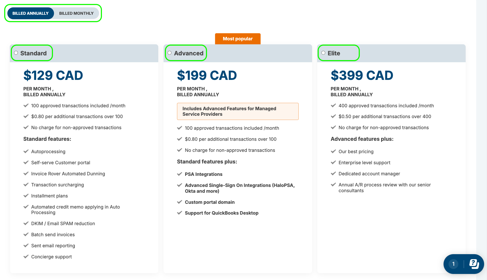 You receive a calendar month free trial starting from your first processed transaction. You can choose between monthly or annual billing and select the package that best fits your needs based on features and transaction volume.