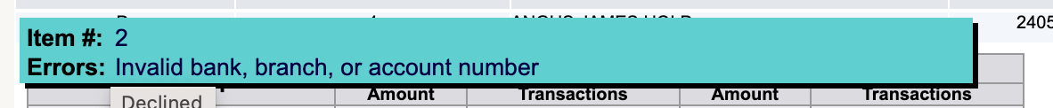 If you receive a declined EFT/ACH transaction from Bambora, follow the steps below to troubleshoot the issue: