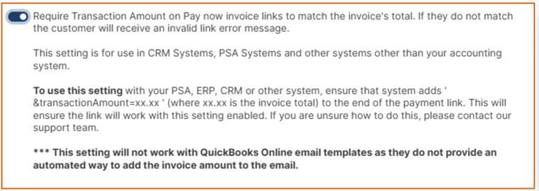 Step 5: Scroll down to Enable "Require transaction amount on Pay Now invoices" and then click "Save Portal Settings".