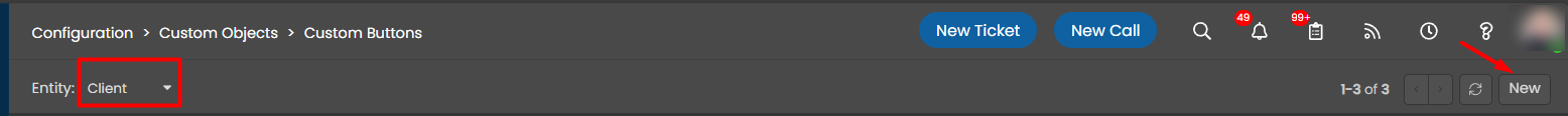 2. In the Entity Dropdown select ‘Client’ and then click on the New button