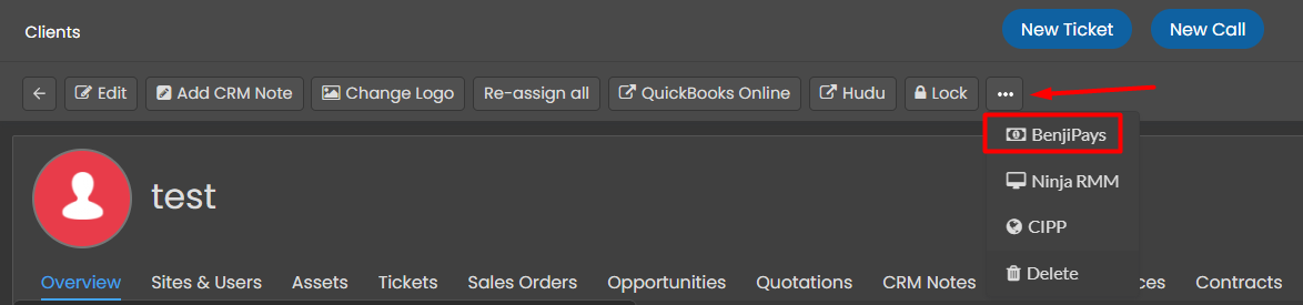 Here, we show how to create a button in Halo on the client entity so that you can link directly to the customer in Benji Pays.
