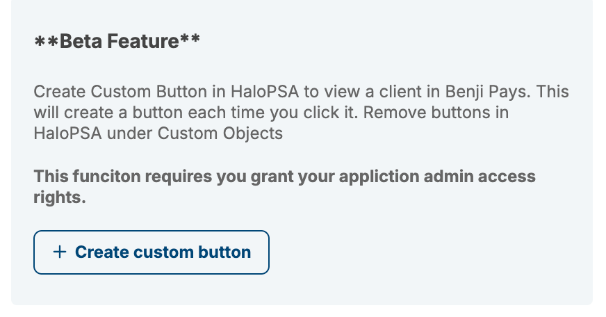 This step by step assumes you already have setup and configured your HaloPSA Integration in Benji Pays. If you have not, please do so first.Step 1: Permissions