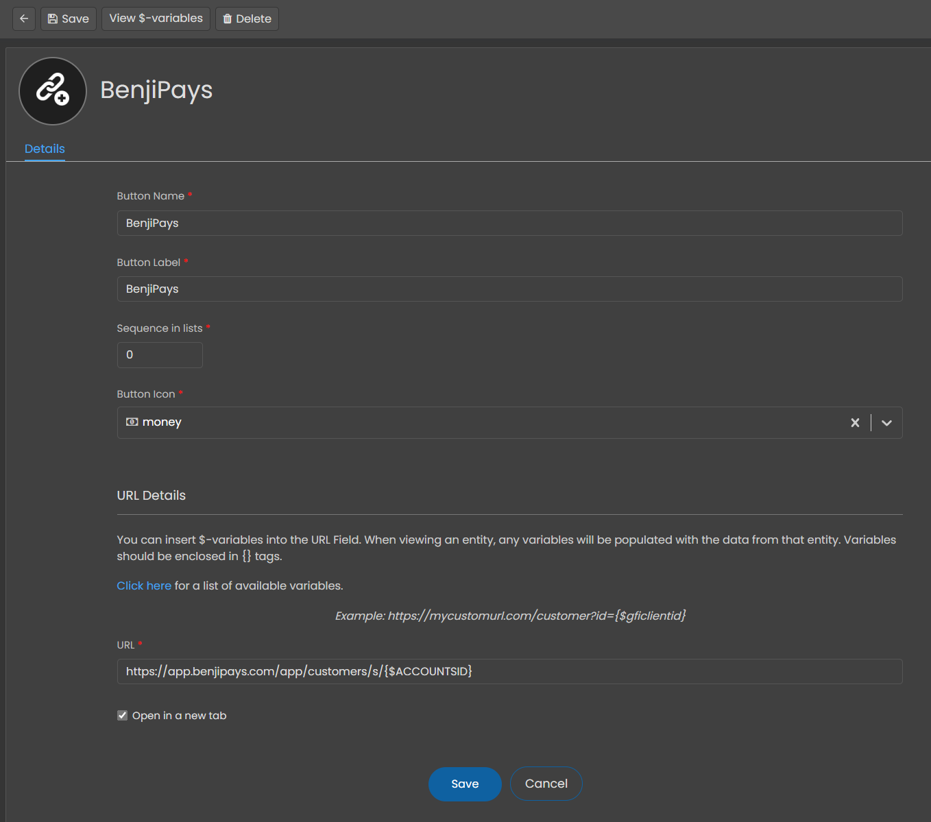 - Xero: https://app.benjipays.com/app/customers/s/{$XEROID}