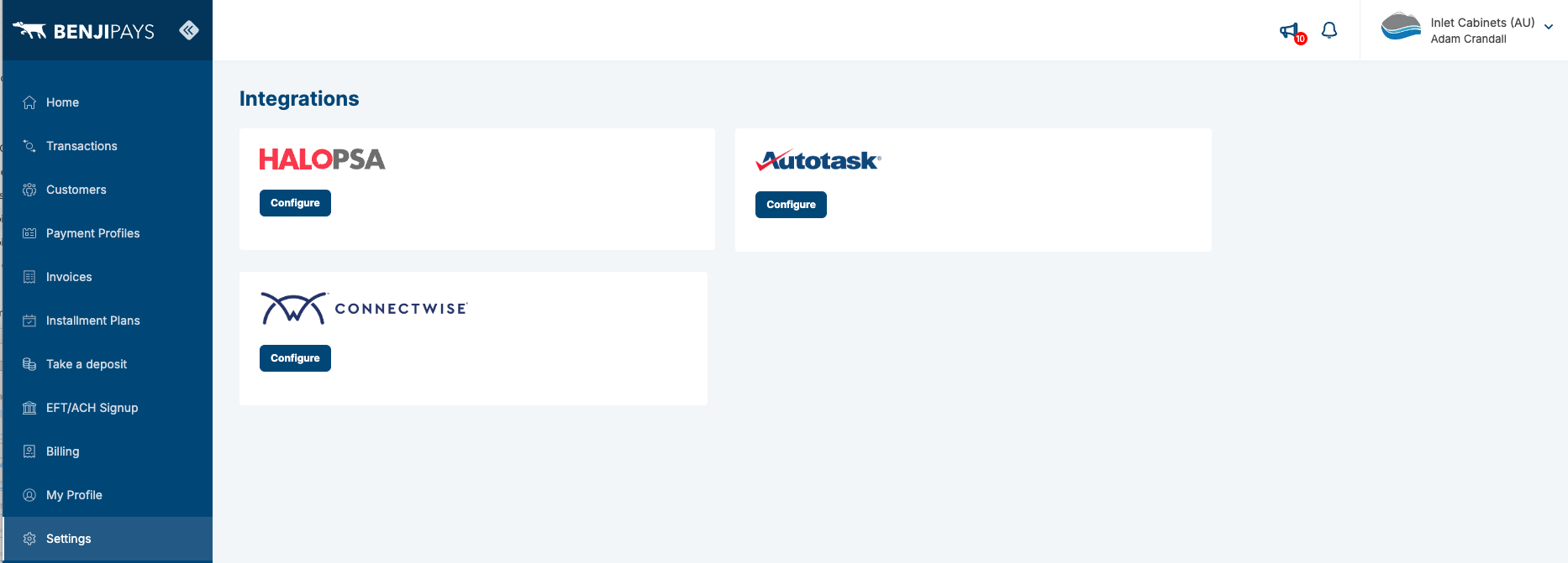 This article walks you through connecting ConnectWise to Benji Pays, syncing companies/customers contacts, and configuring whether invoices display the PDF from ConnectWise PSA or your accounting system.