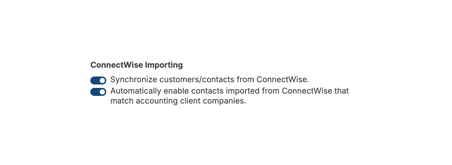 ✅ Automatically enable contacts imported from ConnectWise that match accounting client companies (turn this on if you want matching contacts auto-enabled in Benji)