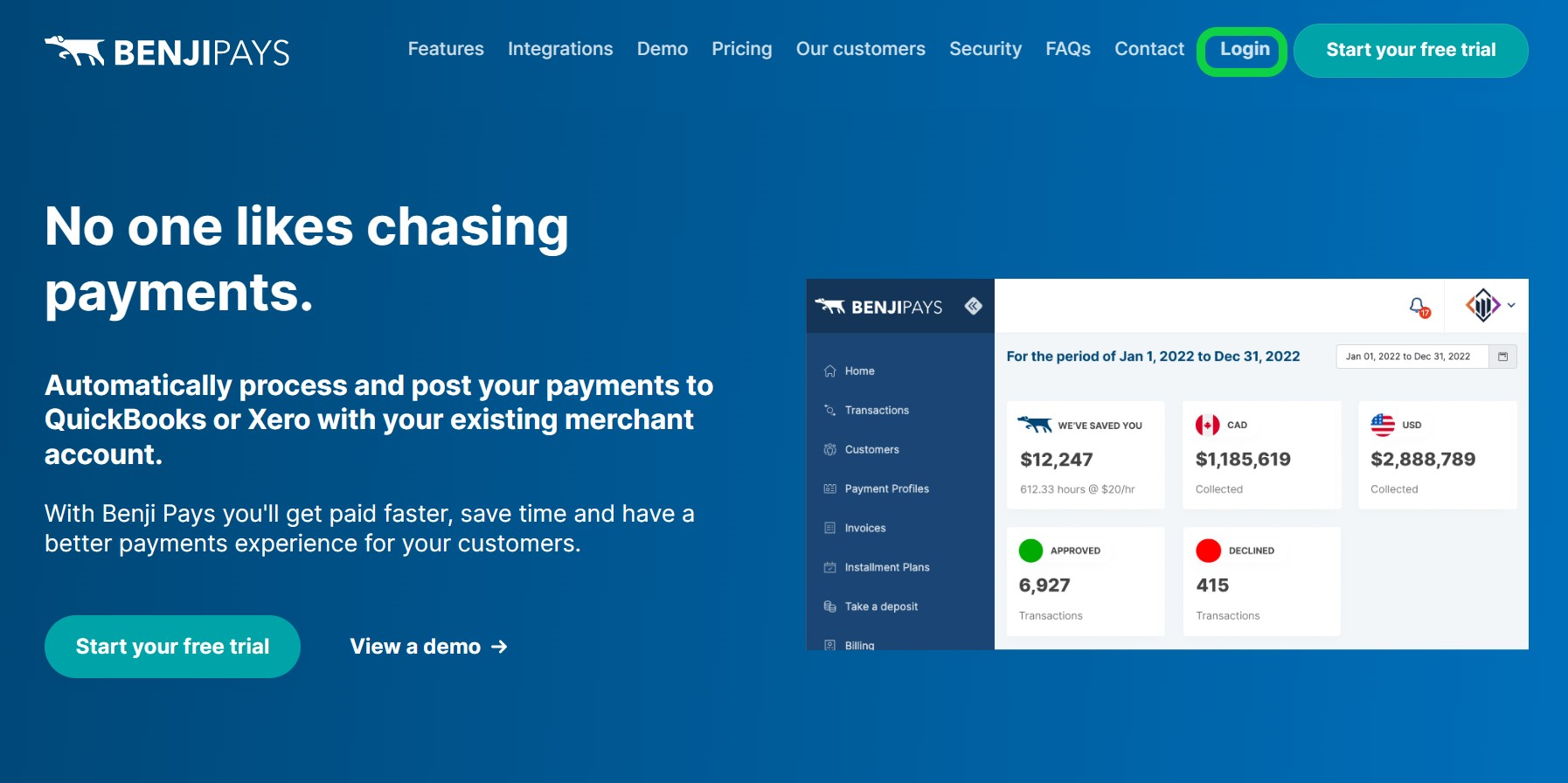 Important- ensure your ConnectWise PSA invoices always have invoice numbers and that they match the numbers in your accounting system. Benji Pays looks up the invoice in ConnectWise using the invoice number.Step 1: Log in to Benji Pays
